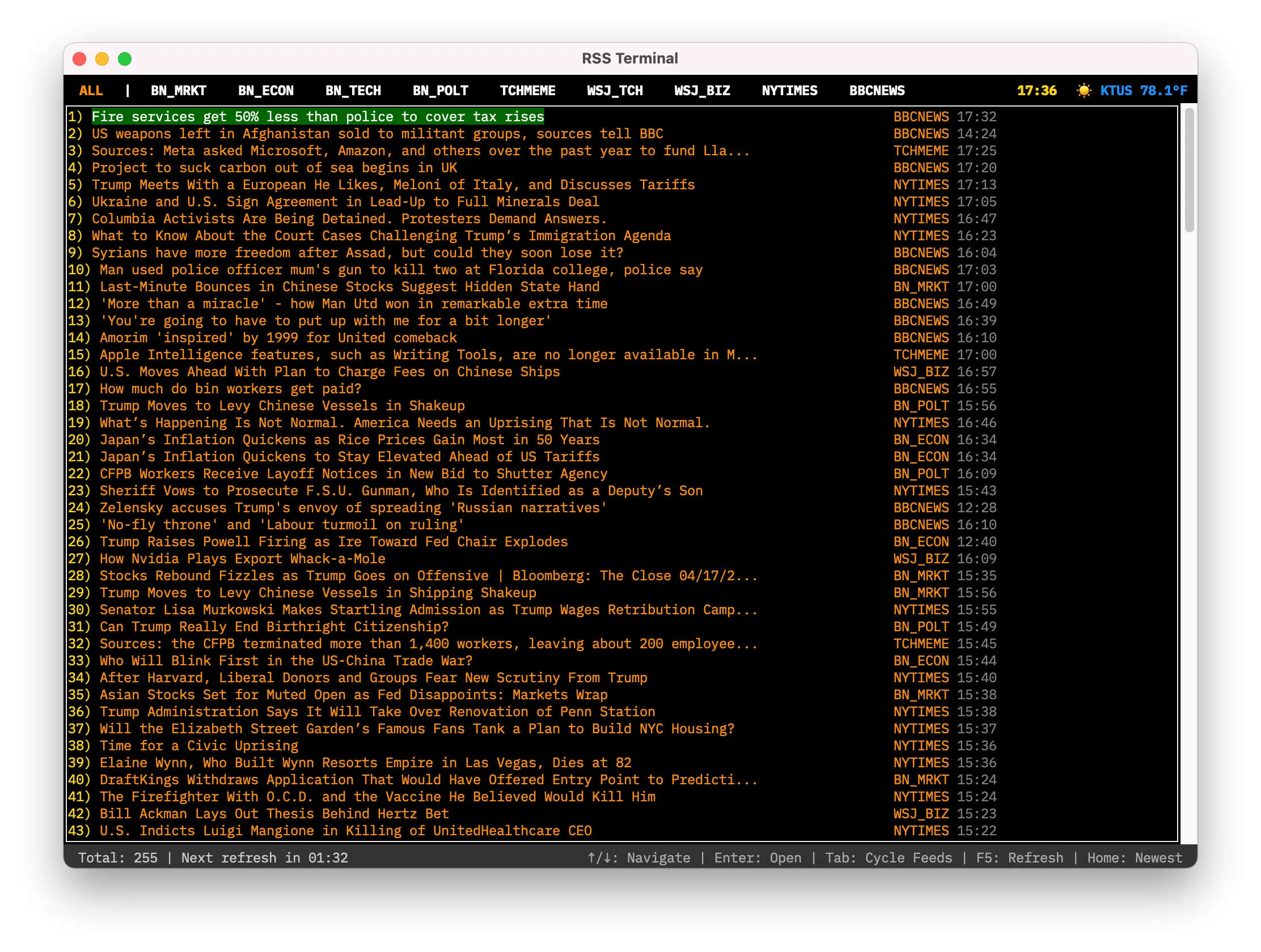 The core idea came together quickly—a terminal-like interface displaying headlines from various feeds. The vibes were feeling very good.